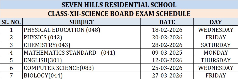 CLASS-XII-SCIENCE BOARD EXAM SCHEDULE 2025-26