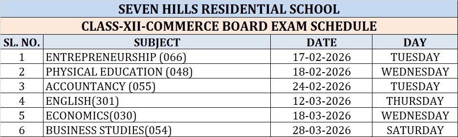 CLASS-XII-COMMERCE BOARD EXAM SCHEDULE 2025-26